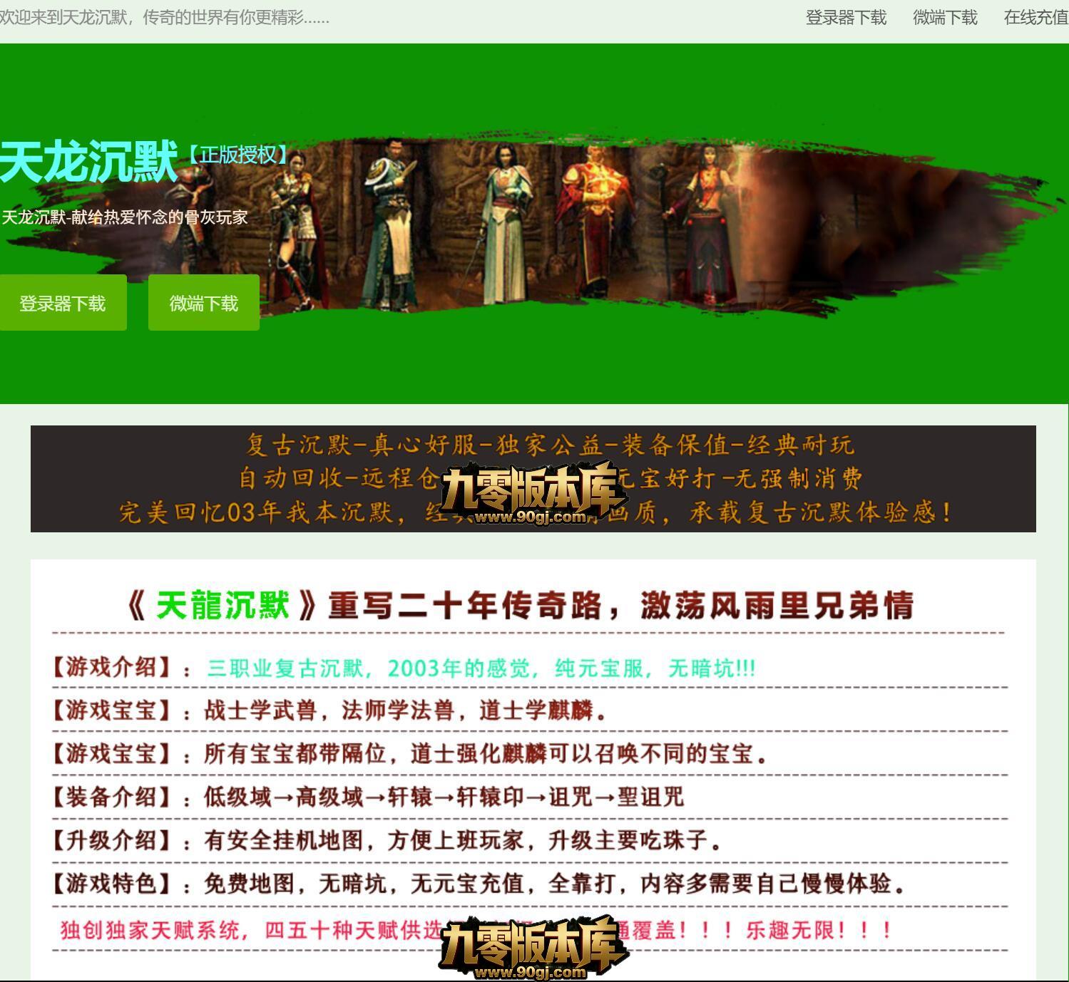 J0-009-天龙沉默-三职业天赋系统元素属性夺宝奇兵称号系统技能修炼三大陆
